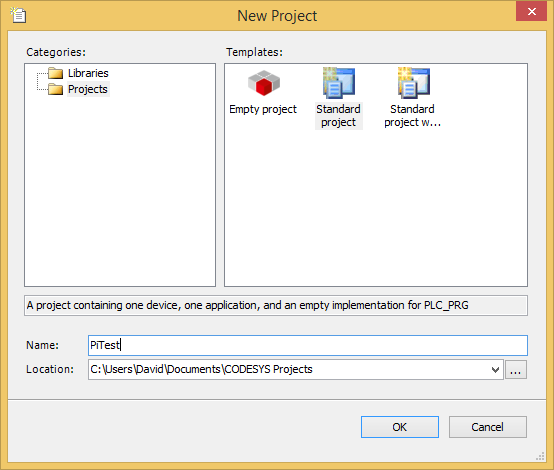 I selected the default type of a Standard project gave it a name and clicked OK.
