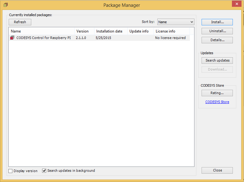 I launched CODESYS V3.5 SP6 Patch 3 from the link on the windows desktop, selected the Standard environment when prompted. I then launched the Package Manager from Tools/PackageManager… I then selected Install… and browsed to the CODESYS_Control_for_Raspberry_PI package,