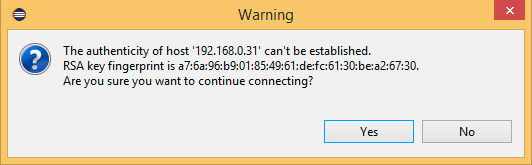 Press Select… and setup a new SSH connection to your Raspberry PI (Mine is running a newly installed image and has the default username and password).